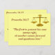 Carte de mémorisation des Écritures sur la justice, Proverbes 18:17. Une balance de justice met en valeur cette carte de mémorisation du verset biblique Proverbes 18:17, qui dit "Celui qui expose le premier sa cause paraît juste, jusqu'à ce que l'autre vienne le réfuter." Ce sont des outils parfaits pour vous aider à apprendre à mémoriser les versets bibliques. Ce verset, en particulier, est parfait pour ceux qui travaillent dans le système judiciaire. La balance de justice est présente sur le recto et le verso. Un côté comporte le verset entier et l'autre seulement la référence biblique.