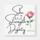 She is clothed with strength and dignity - Proverbs 31:25 Bible Verse with Single Rose Flower Design. A great bible scripture for all women.