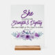 Proverbs 31:25 Strength and Dignity Purple Flower Acrylic Sign