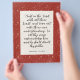 This country print features a vibrant red backdrop adorned with delicate white flowers and botanicals. At the heart of the artwork lies the uplifting Bible verse from Proverbs 3:5-6 KJV (King James Version), beautifully scripted to inspire strength and reassurance. Ideal for a cozy living space, a serene prayer corner, bible study stationery, it serves as a daily reminder of divine guidance and support.