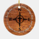 Proudly show your faith with this classy ornament. Design features a black compass design with a cross in the middle, and white letters on a wood-grain style background. A great reminder to acknowledge Him.