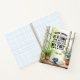Personalized notebook, journal with inspirational quote scripture depicts a table with an open Bible in front of a window. It features an encouraging Bible Verse Psalm 119:105, "Your word is a lamp for my feet, a light on my path." Customize the back with a name or details of your choice.