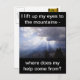 A short excerpt from Psalm 121- I lift up my eyes to the mountains-- where does my help come from? Look it up and find out just how much God does for us. Copyright © 2013 Fred Ziegler
