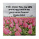 Beautiful field of tulips with Bible Verse of worship and praise: "I will praise You, my God and King; I will bless your name forever. Psalm 145:1"