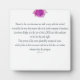 My furbaby passed away a week ago. I wanted to send her vet of 12 years a keepsake. This plaque far exceeded any expectations. The quality is incredible. The color and detail captured my little girl. The plaque is extremely well made and durable with a little stand. I am thrilled with it. I live in Canada and the product arrived in only a couple of days so the turnaround was so quick. Sharp image with brilliant coloring. The words are alligned correctly.