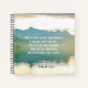 Inspirational quote scripture personalized notebook, journal depicts a beautiful nature photograph of a lake surrounded by mountains. It features a portion of the beloved 23rd Psalm verses 1-3, "The LORD is my shepherd; I shall not want... He leads me beside the still waters. He restores my soul." Customize the back with a name or details of your choice.
