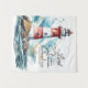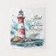 Tapestry with inspirational quote scripture depicts a red and white lighthouse on a rocky ocean coastline. It features a powerful and encouraging Bible Verse Psalm 27:1, "The LORD is my light and my salvation; Whom shall I fear? The LORD is the strength of my life; Of whom shall I be afraid?"
