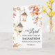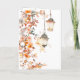 Greeting card with inspirational quote scripture depicts an autumn watercolor design with fall coloured leaves surrounding hanging lantern lights. It features an encouraging Bible Verse Psalm 27:1, "The Lord is my light and my salvation: whom shall I fear." The greeting, prayer can be personalized or deleted for a hand written message.