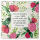 Inspirational scripture ceramic tile depicts a beautiful floral watercolor design with red, pink and green clover flowers and leaves. It features Bible Verse Psalm 37:4, "Delight yourself in the Lord and he shall give you the desires of your heart."