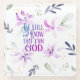 Inspirational scripture glass coaster depicts a beautiful watercolor violet garden design with simple flowers and leaves. It features Bible Verse Psalm 46:10 "Be still and know that I am God." *