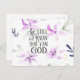 Inspirational scripture postcard depicts a beautiful watercolor violet garden design with simple flowers and leaves. It features Bible Verse Psalm 46:10 "Be still and know that I am God." *