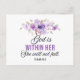 God is within her; she will not fall. - Psalm 46:5 Bible Scripture with Purple Flower Design.