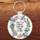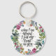 Inspirational scripture keychain depicts a pretty colourful watercolor wreath with wild meadow blue, pink and orange flowers and greenery. It features Bible Verse Psalm 56:3, "When I am afraid, I put my trust in You."-