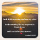 A calming scriptural coaster shows a vibrant sunrise over mountains with the clouds reflecting shades of yellow and purple behind the hopeful Bible verse from Psalms. Psalm 5:3 is a scripture quote that easily becomes a Christian's morning prayer. "Lord, in the morning you hear my voice. In the morning I lay my requests in front of you, and I watch for your answer." from the Evangelical Heritage Version of the Bible.