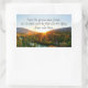 Inspirational quote sticker depicts a beautiful autumn sunset over the mountains. It features Bible Verse Psalm 72:19, "Praise His glorious name forever! Let the whole earth be filled with His Glory. Amen"