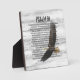 My furbaby passed away a week ago. I wanted to send her vet of 12 years a keepsake. This plaque far exceeded any expectations. The quality is incredible. The color and detail captured my little girl. The plaque is extremely well made and durable with a little stand. I am thrilled with it. I live in Canada and the product arrived in only a couple of days so the turnaround was so quick. Sharp image with brilliant coloring. The words are alligned correctly.