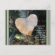 This postcard shows a stunning photograph of a heart-shaped cottonwood leaf that fell from a tree on a windy day and was pierced by a cactus needle. The Bible verse shown is Psalm 51:17 which says, "My sacrifice, O God, is a broken spirit; a broken and contrite heart you, God, will not despise."