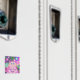 Groovy baby! A pink striped cat with swirling whiskers and a psychedelic rainbow patterned background. Fridge magnet with a pink, blue, green, purple and yellow customizable design for you to personalise with your own text, images and ideas. The text can easily be changed using the template provided or click the 'Customize It' button to make further alterations. An original digitally enhanced coloured pencil drawing by Jess Perry.