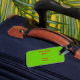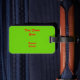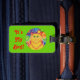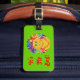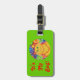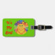 Groovy baby! A yellow and orange striped cat with swirling whiskers and a psychedelic rainbow patterned background. Luggage tag with a yellow, orange, red, blue, green, pink, purple, and white customizable design for you to personalise with your own text, images and ideas. An original digitally enhanced coloured pencil drawing by Jess Perry.