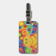 Groovy baby! A yellow and orange striped cat with swirling whiskers and a psychedelic rainbow patterned background. Luggage tag with a yellow, orange, red, blue, green, pink, purple, and white customizable design for you to personalise with your own text, images and ideas. An original digitally enhanced coloured pencil drawing by Jess Perry.