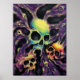 A psychedelic piece featuring skulls formed within various plumes of smoke. The skulls and smoke are blended in different tones of purple, blue, green, orange and yellow. The layout and colors of this Artwork are very reminiscent of old 70’s and 80’s Blacklight Posters. Artwork by Gregg's Deep Colors.
