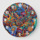 Psychedelic Batik Guitar Art–Colourful Retro Music Large Clock