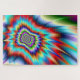 An optically challenging fractal image with a psychedelic colour explosion design in red blue green and violet.