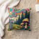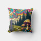 Psychedelic Disc Golf Basket and Retro Mushrooms Throw Pillow