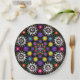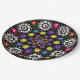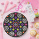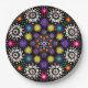 Hand drawn mandala black, yellow, blue and purple dot mandala paper plate.