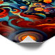 A.I .created print of a large, colorful eye is surrounded by vibrant surreal psychedelic floral patterns and swirling abstract shapes.