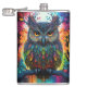 Psychedelic Fantasy Hippy Owl Hip Flask