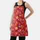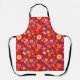 Psychedelic Flowers Pattern Retro Style Red BG Apron