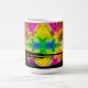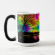 A psychedelic magical forest on a magic color changing coffee mug. This coffee mug is heat sensitive, and changes color when it has hot liquid in it.