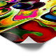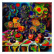 A.I .created print of a surreal still life bursts with colorful fruits, including apples, set against a psychedelic background.