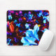 Psychedelic Garden Flowers Blue Purple Fuschia Mouse Pad