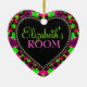 customizable text heart shape ceramic ornament : Neon bright abstract pattern with centre space for your own text on both side of this hanging ornament. Ornament idea : Make your own personalized Door hanger / room name : hang on short cord in middle top of your door. Suitable also as a personalized gift for special occasions and events : Graduation, Engagements, Wedding favours, Achievements and awards, Bridesmaid gifts, or great for adding your favourite quote or affirmations and hang it so that you are reminded daily!