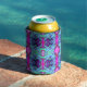 Psychedelic Green and Blue Hibiscus Pattern Can Cooler