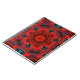 This psychedelic notebook features vibrant red and teal in a kaleidoscope pattern.