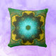 This colourful pillow features green, yellow, and teal in a psychedelic kaleidoscope pattern. Add a splash of bright colours to any room!