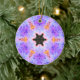 Psychedelic Mandala Flower Blue Pink and Yellow Ceramic Ornament