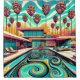 Immerse yourself in the vibrant world of the “Psychedelic Mid-Century Modern Pool” shower curtain, a captivating addition to the “Posh Pools” collection from H2OArt by AlexSandra. This stunning design features a mid-century modern home with a pool and palm trees, all rendered in a psychedelic style. The home showcases clean lines, flat planes, and large glass windows typical of mid-century architecture. The pool, with its swirling patterns and vibrant colours, creates a trippy effect, while the tall palm trees with exaggerated fronds enhance the psychedelic feel. Perfect for adding a touch of retro-surreal elegance to your bathroom, this shower curtain transforms your space into a serene aquatic sanctuary.