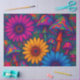 Bring vibrant, trippy energy into your creative projects with this psychedelic mushroom and daisy design. Featuring neon-coloured mushrooms, bright daisies, and a whimsical quilted background, this artwork is perfect for those who love surreal, colourful, and Alice in Wonderland-inspired styles. Use this design for decoupage, scrapbooking, journalling, or to add a bold pop of colour to your crafts.