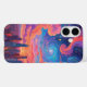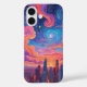 Psychedelic art of pastel sky and pastel dreamy city phone case.