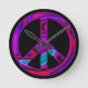A funky, colourful peace sign against black. You can use the system to define the background colour. Add custom text to create your own face.