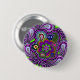 A button with a colourful psychedelic design with abstract flowers, a heart, and a peace sign. It's all surrounded by purple paisley.