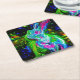 Psychedelic Rabbit Dragon in Neon Fantasy Square Paper Coaster