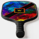 Psychedelic Red Yellow Blue Cosmic Clouds Monogram Pickleball Paddle