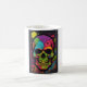 Let your skull-loving, colour-crazed self shine with this vibrant and edgy psychedelic skull mug! This artwork bursts with electric colours of green, pink, blue, and orange against a dark background, creating a striking contrast. The skull's exaggerated features and splattered paint effects add a chaotic, surreal quality, making this mug perfect for fans of alternative and avant-garde art. This eye-catching design is sure to turn heads, with its bold colours and intricate details evoking a sense of mystery and excitement.