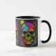 A vibrant and edgy psychedelic skull artwork that bursts with electric colours and dynamic energy. This image combines neon shades of green, pink, blue, and orange with a dark background to create a striking contrast. The skull’s exaggerated features and splattered paint effects add a chaotic, surreal quality, making this piece perfect for fans of alternative and avant-garde art. This eye-catching design is sure to stand out, with its bold colours and intricate details evoking a sense of mystery and excitement.