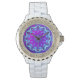 Psychedelic Stars, Abstract Violet Purple Glow Watch